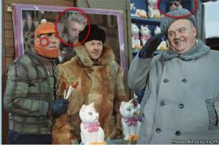 В нем есть три фотоляпа: первый - это морда кота в левом нижнем углу, которая на оригинале отсутствует, второй - это паспорт в руке Жерара Депардье и третий - это  жёлтая вывеска "Евросеть", которая находится правее от головы Жерара.