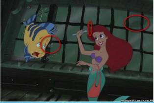 Там обнаружено 3 ляпа, которые спрятаны разработчиками: пузыри воздуха возле рыбы, сосиска на вилке у русалочки и пятно на окне справа сверху.