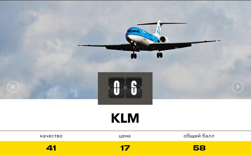 Голландская авиакомпания KLM была основана ни много ни мало - в 1919 г., когда только утихли последние выстрелы Великой войны. Долгое время после она находилась в государственной собственности, однако в 2004 г. была превращена в дочернее предприятие конкурирующей Air France. Новый год начался для старожилов весьма приятно: Немецкими аналитиками из The German Jet Airliner Crash Data Evaluation Centre (JACDEC) их было названо самой безопасной компанией в Европе, а другой влиятельный организацией Flightstats их признали самой пунктуальной среди континентальных конкурентов. Кроме того, KLM приделяет существенное внимание использованию биотоплива, пытаясь снизить гибельное влияние авиации на экологическую ситуацию. 41+17=58