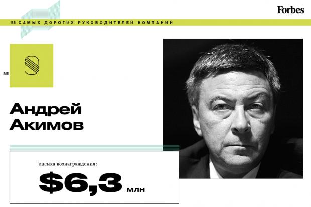 Андрей Акимов начинал свою карьеру с Внешторгбанка СССР в 1974 году, а уже с 2002 года и по сей день Акимов занимает пост председателя правления Газпромбанка. В 2015 году руководитель работал в советах директоров таких корпораций, как "Газпром", "Новатэк" и "Роснефть", в итоге его труды были оценены в 1,1 млн. долларов.