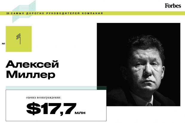 Алексей Миллер занимает пост председателя правления ПАО "Газпром". На сегодняшний день А. Миллер владеет 0, 00095% акций Газпрома, которые оценены в 488 198 долларов. Для сравнения, в 2014 году за свою работу Алексей Миллер получил вознаграждение около 27 млн. долларов.