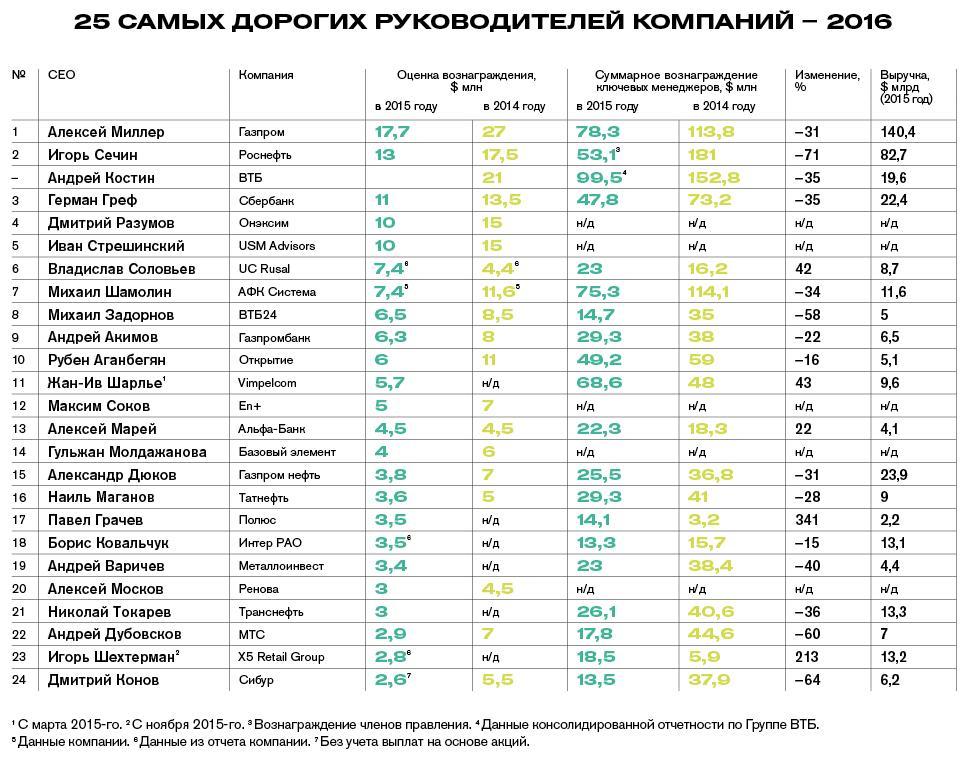 Список Форбс 2016 - 25 самых дорогих топ-менеджеров РФ