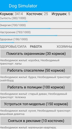 - каждое действие в Симуляторе собаки автоматически приравнивается к одному дню;