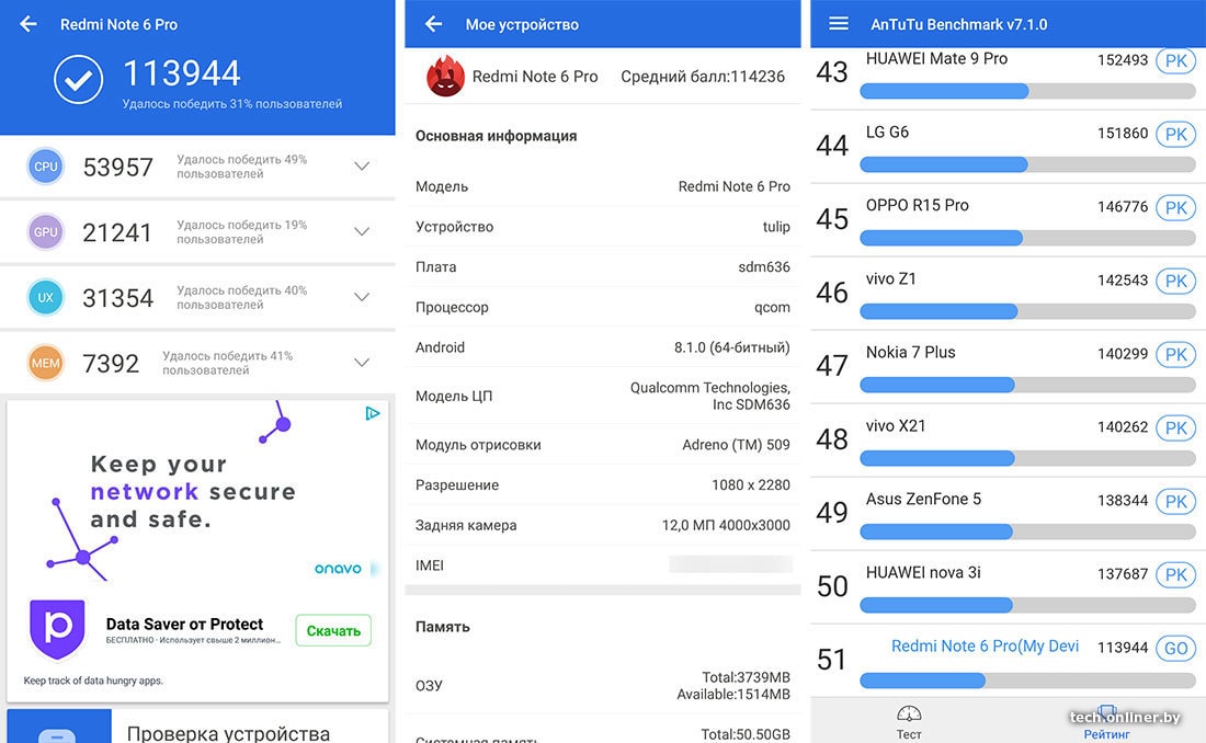 Сяоми Редми Ноут 6 Про – производительность, Antutu