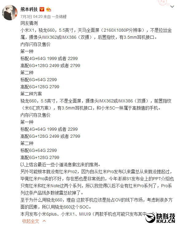 В общем, у нас назревает премьера новой линейки, первый аппарат в которой вытеснит неудавшийся Redmi Pro и заменит Redmi Pro 2. Более того, Lanmi X1 гарантировано получит свежий и очень производительный среднеклассовый процессор Snapdragon 660, а значит выпуск Редми Про 2 на аналогичном чипсете лишен смысла. Дополнительным подтверждением тому является и полное отсутствие утечек и рекламы о Redmi Pro 2.