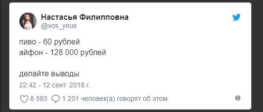 9. Пиво - 60 рублей, iPhone - 128000 рублей