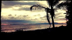 Широкий пляж с черным вулканическим песком, бурная тропическая растительность, огромные корабли в море (пардон, в океане).